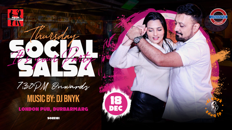 THURSDAY SOCIAL SALSA “It’s Your Party”  SALSA NEPAL’s – Social Salsa Party Season 2 | Ep181 Hosted by Salsa Dance Academy (Salsa Nepal) Thursday, 18 December 2025, @londonpub.ktm Durbarmarg, Kathmandu 7:30 […]
